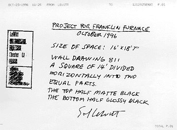 Instructions faxed by LeWitt to Franklin Furnace for Drafters