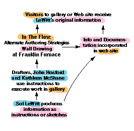 Sol LeWitt from Catalogue of Pasadena Art Museum Show, Nov. 17, 1970 - Jan. 3, 1971: The draftsman and the wall enter a dialogue. The draftsman becomes bored but later through this meaningless activity finds peace or misery. The lines on the wall are the residue of this process. Each line is as important as each other line. All of the lines have become one thing. The viewer of the lines can only see lines on a wall. They are meaningless. That is art. (From Pasadena catalogue.) The artists conceives and plans the wall drawing. It is realized by draftsmen. (The artist can act as his own draftsman.) The plan, written, spoken or a drawing, is interpreted by the draftsman. There are decisions which the draftsman makes, within the plan, as part of the plan. Each individual, being unique, given the same instructions would carry them out differently. He would understand them differently. The artist must allow various interpretations of his plan. The draftsman perceives the artist's plan, then reorders it to his own experience and understanding. The draftsman's contributions are unforeseen by the artist, even if he, the artist, is the draftsman. Even if the same draftsman followed the same plan twice, there would be two different works of art. No one can do the same thing twice. The artist and the draftsman become collaborators in making the art. Each person draws a line differently and each person understands words differently. Neither lines nor words are ideas. They are the means by which ideas are conveyed. The wall drawing is the artist's art, as long as the plan is not violated. If it is, then the draftsman becomes the artist and the drawing would be his work of art, but that art is a parody of the original concept. The draftsman may make errors in following the plan without compromising the plan. All wall drawings contain errors. They are part of the work. The plan exists as an idea but needs to be put into its optimum form. Ideas of wall drawings alone are contradictions of the idea of wall drawings. The explicit plans should accompany the finished wall drawing. They are of importance. (from Art Now, vol. 3, no. 2, 1971.)